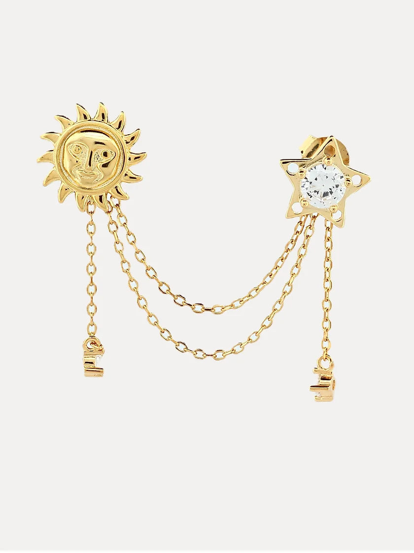 Güneş Yıldız Çift Zincirli Kombin Küpe